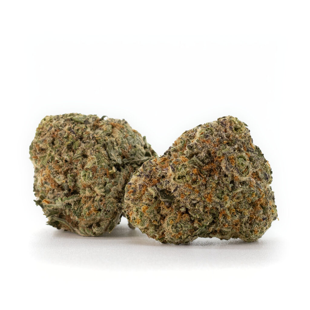 Blackberry Pie is a rare evenly balanced hybrid (50% indica/50% sativa) strain created through crossing the infamous Joorizo’s Blackberry Widow with the potent Crystal Locomotive. The resulting child brings on a super powerful high, even with its moderate 16-17% average THC level. It comes on slowly, building first with a sense of euphoria in the back of your neck and head. You’ll feel an influx in creativity and a touch of motivation in this state, lending itself well to artistic activity that doesn’t require too much focus. As these effects grow, you’ll start to feel a warming body high wash over you, lulling you into a state of relaxation with a potent pang of hunger that comes with it. Thanks to these effects and its high THC level, Blackberry Pie is often chosen to treat conditions such as cramps, nausea, appetite loss, chronic pain, and inflammation. Blackberry Pie has a flavor just like its name suggests – fresh blackberries and nuts! The aroma is very dank and earthy with a spicy berry overtone. This bud has dark olive green nugs with purplish undertones, dark amber hairs, and a coating of crystal trichomes that look lavender in the right light.